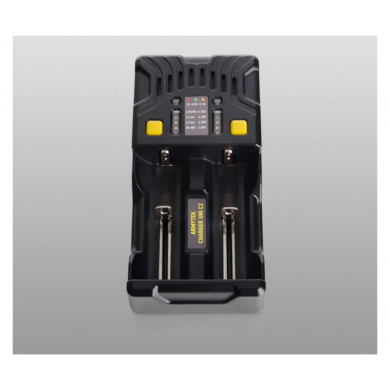 Armytek Uni C2 универсальное зарядное устройство. С помощью него Вы можете заряжать одновременно аккумуляторы разных типов, благодаря тому, что напряжение подается отдельно на каждый канал. Одной кнопкой Вы легко сможете выбрать тип батареи и ток заряда. Зарядное устройство изготовлено из огнестойких материалов для хорошего теплоотвода.