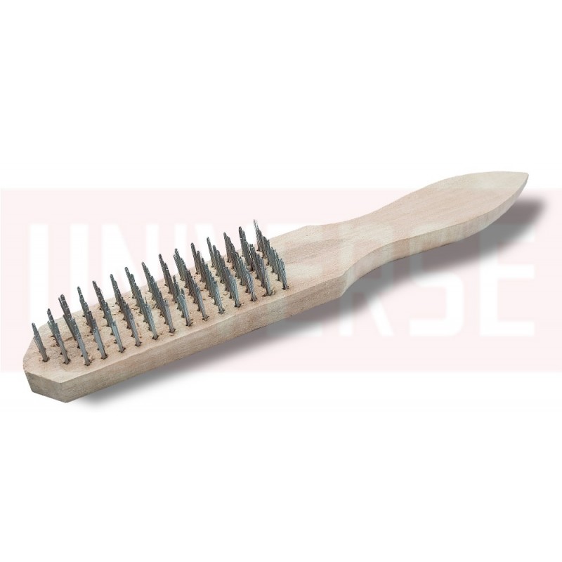 - Рабочая часть щетки изготовлена из стальной проволоки повышенной жесткости, которая надежно закреплена в деревянном основании.